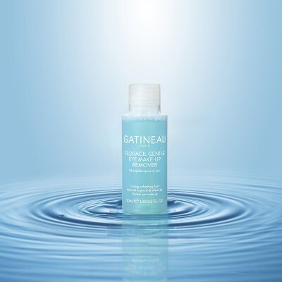 STEP 1) Dampen cotton pads with Floracil Eye Make-up Remover and place over each eye.